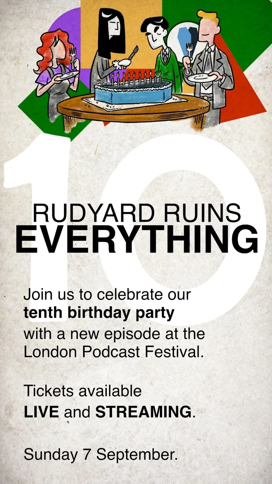 We’re streaming the show online, so you’ll be able to see how Rudyard Ruins Everything no matter where in the world you are. And if you CAN make it to London, we’ll see you there!